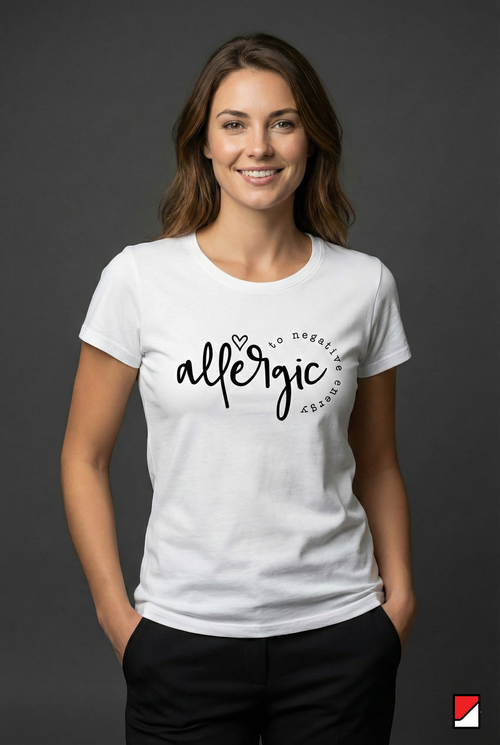 Allergic to Negative Energy – Women’s White Graphic T-Shirt